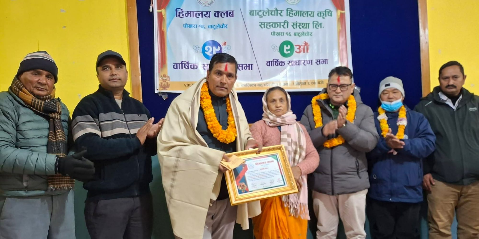 हिमालय क्लवको साधारण सभामा भलिवलका पुर्व राष्ट्रिय खेलाडी बस्नेत सम्मानित