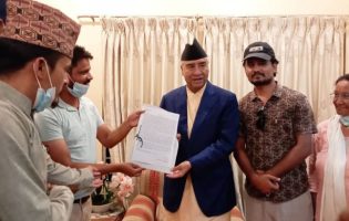 ज्ञापनपत्र बुझ्दै : प्रधानमन्त्री शेरबहादुर देउवा