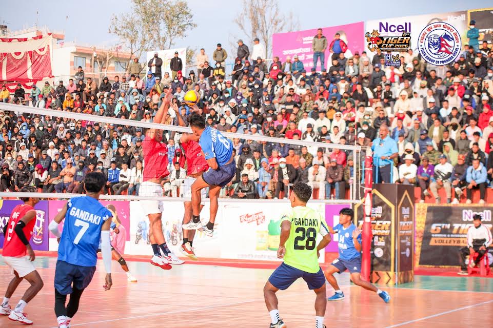 पोखरा, माघ १० । छैटौं टाइगर कप राष्ट्रिय तथा अन्तर्राष्ट्रिय आमन्त्रित क्लव च्याम्पियनसिपमा महिलातर्फ नेपाल पुलिस क्लबले विजयी सुरुआत गरेको छ । टाइगर ग्रुप अफ पोखरा नेपालको आयोजनामा पोखरा रंगशालास्थित भलिबल कोर्टमा जारी च्याम्पियनसिपअन्तर्गत शनिबारको पहिलो खेलमा पुलिसले त्रिभुवन आर्मी [...]