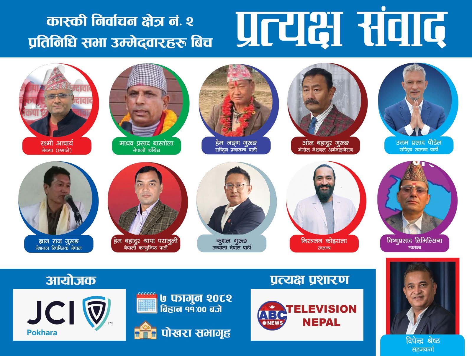 कास्की २ का उम्मेदवारहरू एउटै मञ्चमा: पोखरा जेसीजले फागुन ७ मा ‘ककस’ गर्दै