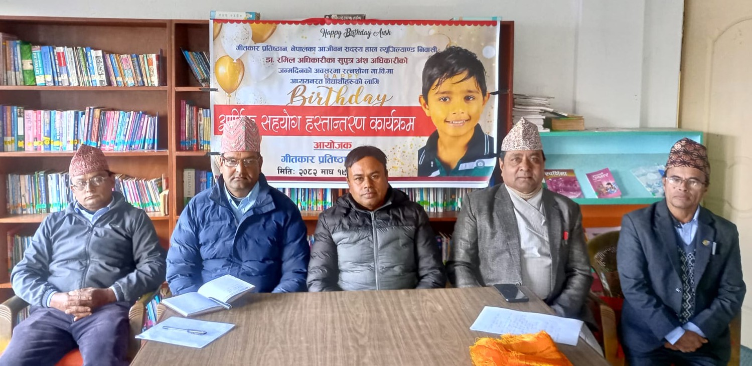गीतकार रमिल अधिकारीद्वारा छोराको जन्मदिनमा विद्यार्थीलाई सहयोग हस्तान्तरण