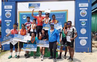 पोखरा साइकल दौड च्याम्पियन प्रकाश र उषा
