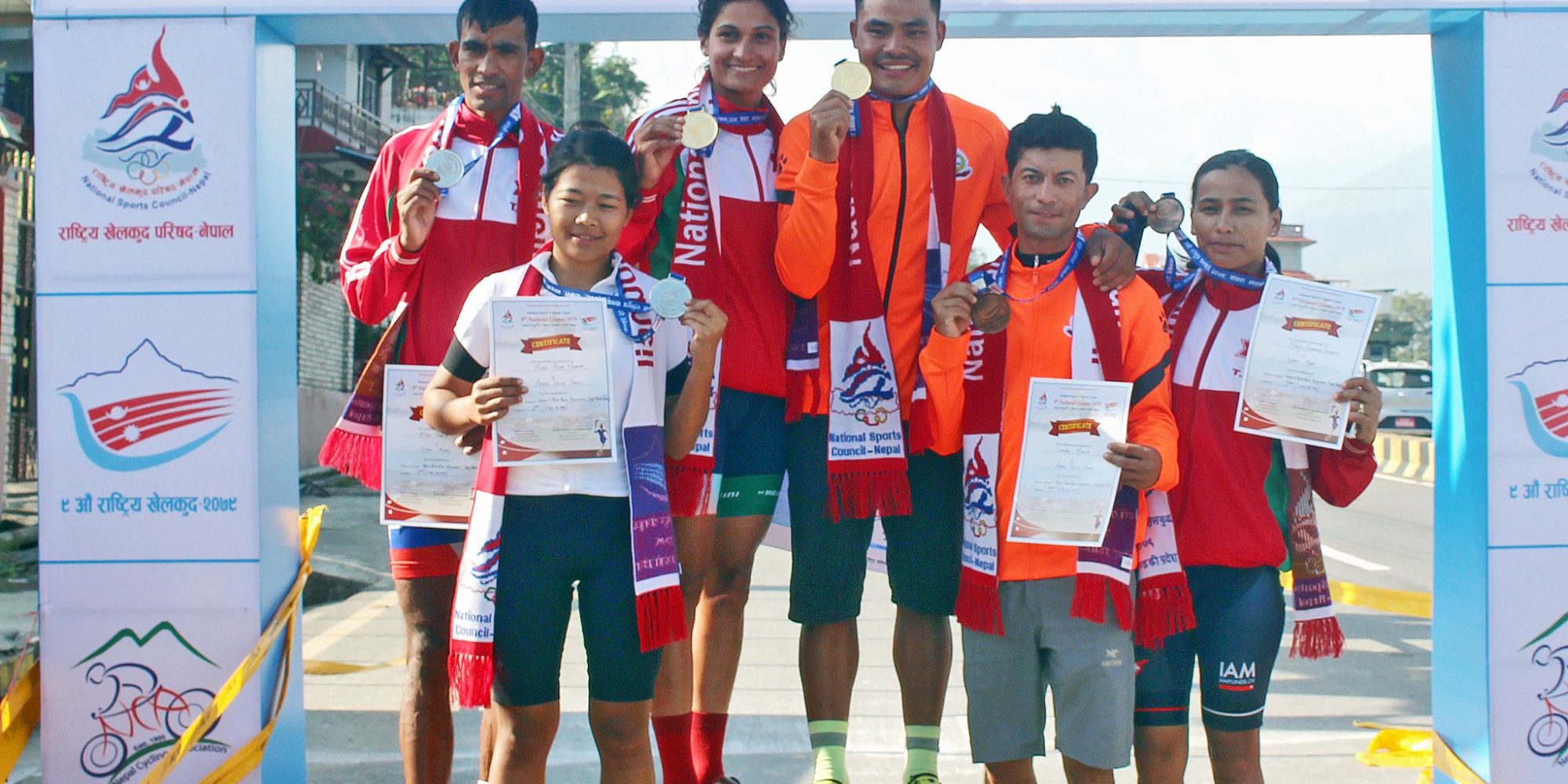 गण्डकी प्रदेशको राजधानी पोखरामा भइरहेको नवौं राष्ट्रिय खेलकुद प्रतियोगिता अन्तरगत मंगलबार भएको साइक्लिङ प्रतियोगिताको इन्डिभिज्युल टाइम ट्रयाल विधामा नेपाल आर्मी र सशस्त्र प्रहरी बलको एपीएफ क्लवले एक÷एक स्वर्ण पदक जितेका छन् । आर्मीले महिलातर्फ र एपीएफले पुरुषतर्फको स्वर्ण पदक जितेको हो ।