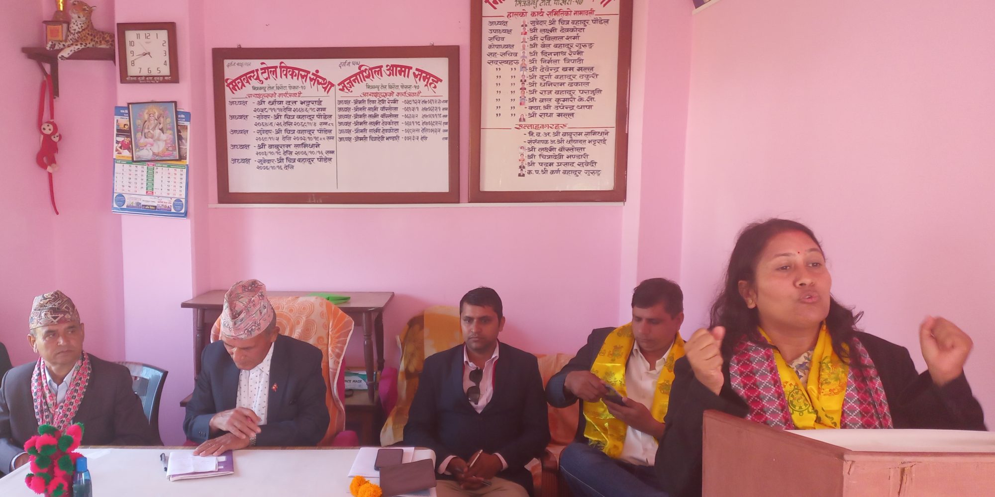 मित्रमिलन टोल विकास संस्थाका अध्यक्ष चित्रप्रसाद पौडेलको अध्यक्षतामा भएको कार्यक्रममा पोखरा २१ का वडाअध्यक्ष दिपकप्रसाद सुवेदी, भिरस्वारा टोल विकास संस्थाका अध्यक्ष्ाँ राजेन्द्र पौडेल,मट्टीखान टोल विकास संस्थाका निर्वतमान अध्यक्ष जुद्धवहादुर क्षेत्री,ध्वाँकोट टोल विकास संस्थाका राजकुमार थापा, विजय पौडेल लगायतले सो क्षेत्रको विकास निर्माणसंगै समस्या र समाधानका बारेमा उम्मेदवारलाई ध्यानाकर्षण गराएका थिए ।