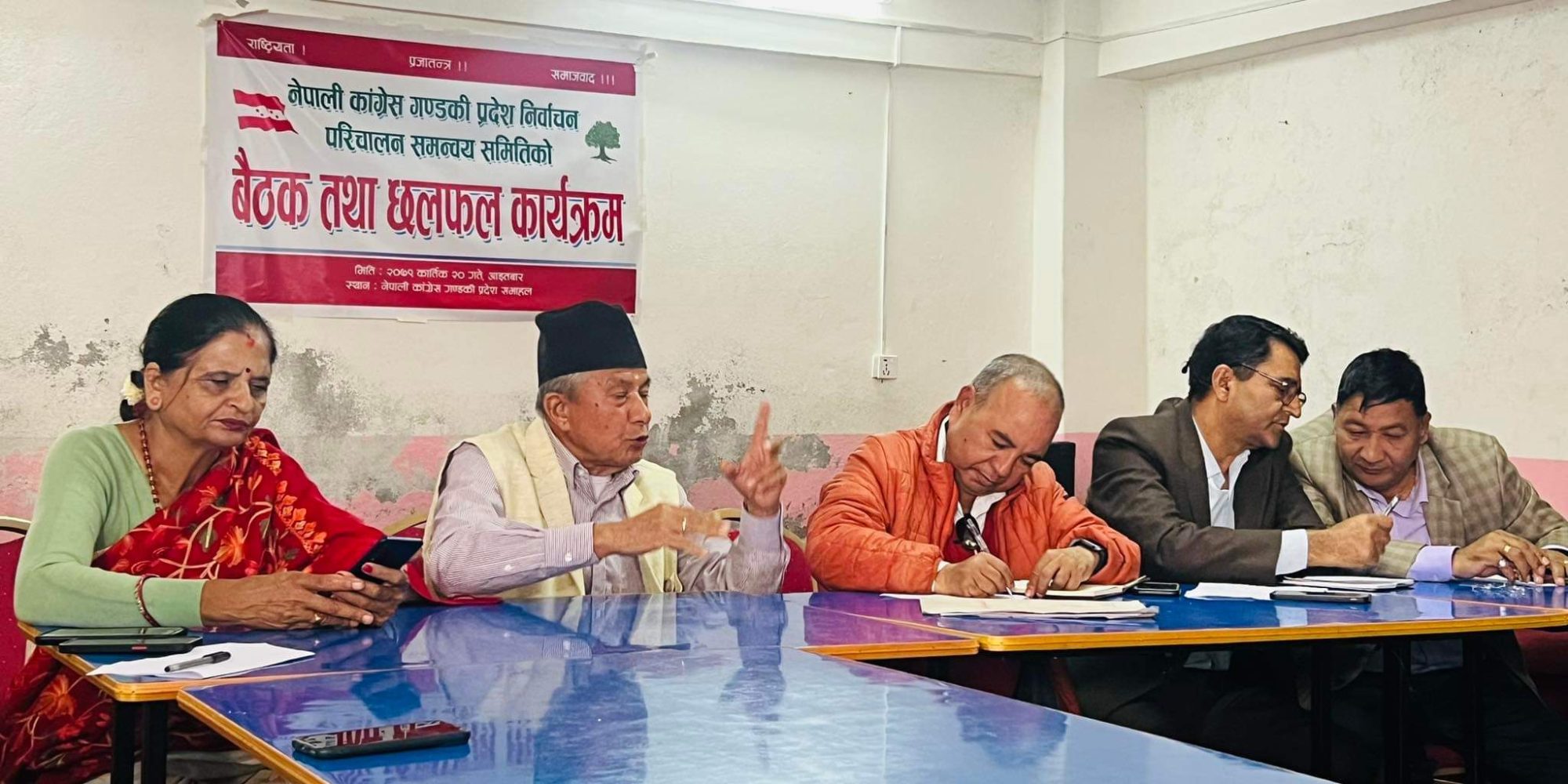 नेपाली कांग्रेस गण्डकी प्रदेश निर्वाचन परिचालन समन्वय समितिका संयोजक तथा नेपाली कांग्रेस केन्द्रका सदस्य धुव्र वाग्लेको अध्यक्षतामा भएको वैठक नेपाली कांग्रेस गण्डकी प्रदेशका मुख्य सचिव पदम श्रेष्ठले सञ्चालन गरेका थिए ।