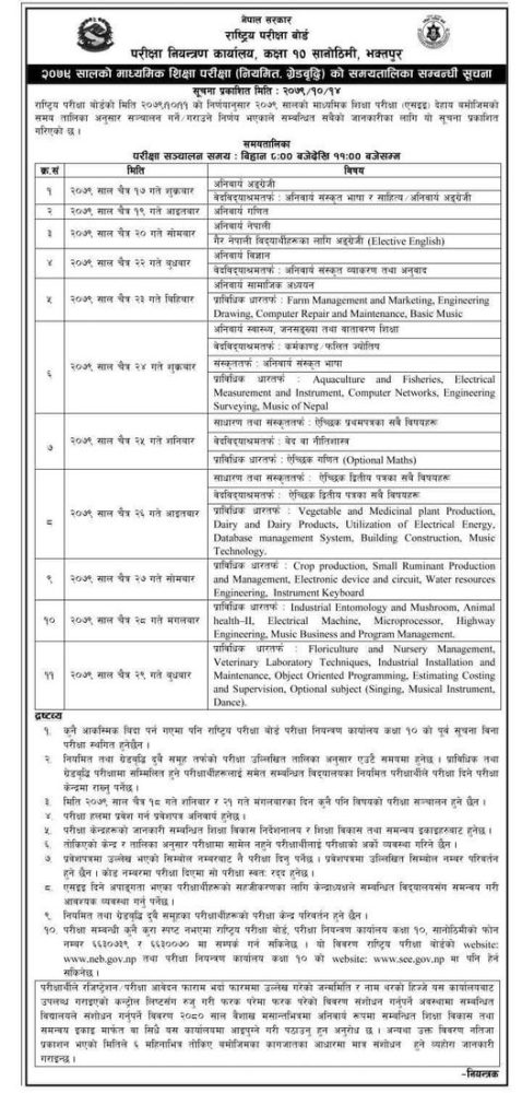 यस वर्षको माध्यमिक शिक्षा परीक्षा (एसईई) को तालिका सार्वजनिक भएको छ ।