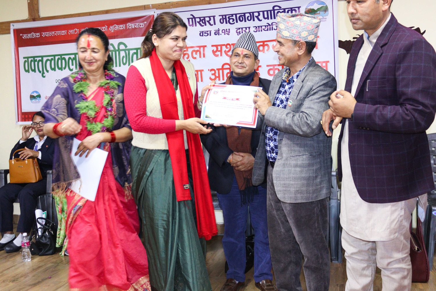 पोखरा महानगरपालिका वडा नं – १५ को महिला सशक्तीकरण एवं क्षमता अभिवृद्धि कार्यक्रम सम्पन्न भएको छ ।