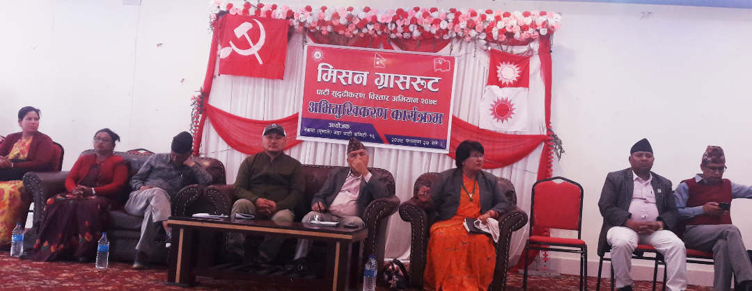 पोखरा । नेकपा एमाले पोखरा महानगरपालिका वडा नं.१६ ले मिसन ग्रास रूट कार्यक्रम आज सम्पन्न गरेको छ । वडा नम्बर १६ का पार्टी अध्यक्ष राजेश गुरुङको अध्यक्षतामा भएको कार्यक्रममा प्रमुख अतिथि केन्द्रिय कमिटी सदस्य एवम गण्डकी प्रदेश सह इन्चार्ज मायानाथ अधिकारी रहनु भएको थियो । भने अतिथि प्रदेश कमिटीका सचिवालय सदस्य डा. पुष्पा केसी भण्डारी रहनु भएको थियो ।