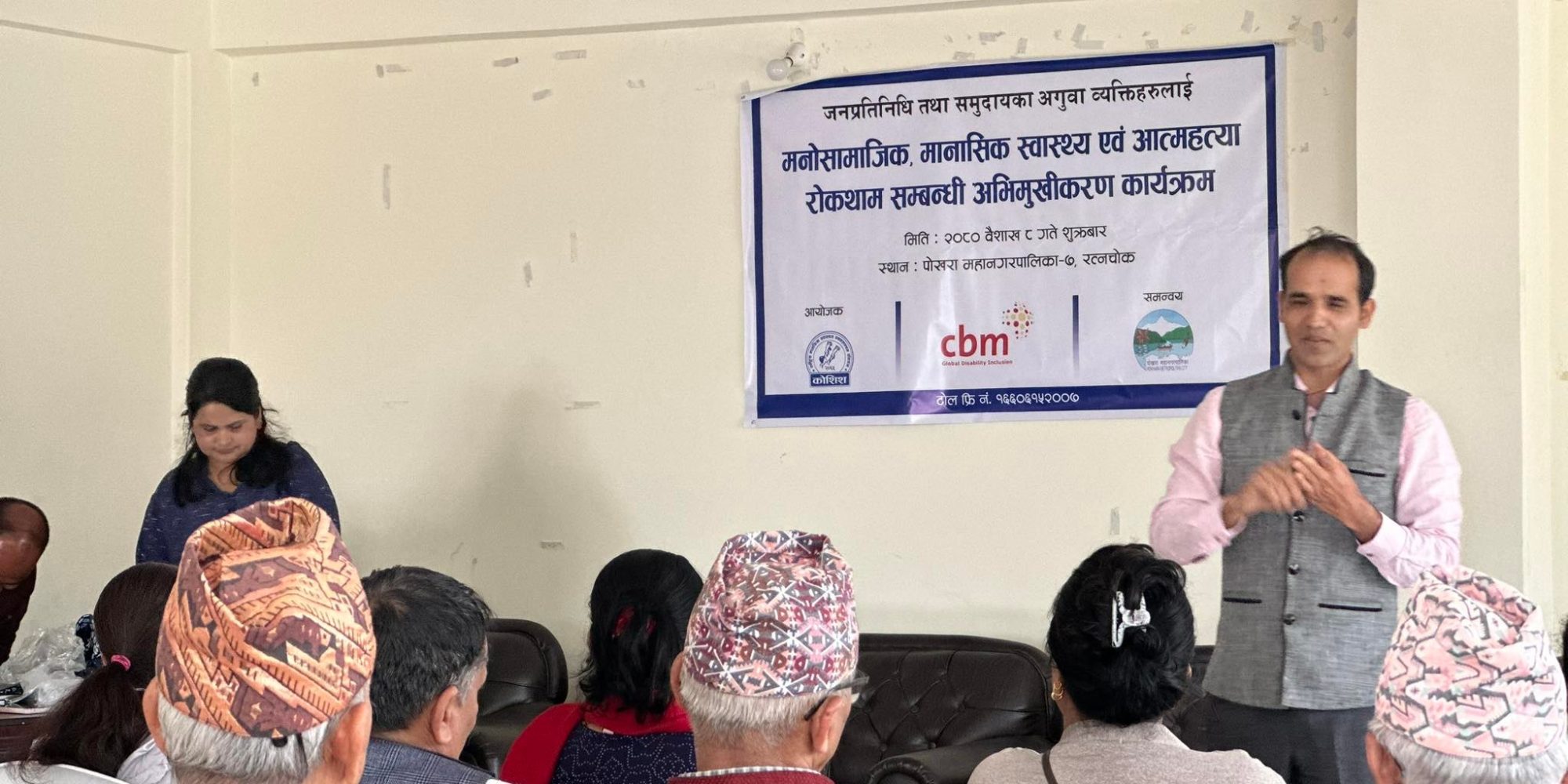 विभिन्न क्षेत्रका गरी ४० जनाको सहभागिता रहेको उक्त अभिमूखीकरण कार्यक्रमको आयोजना राष्ट्रिय मानसिक स्वास्थ्य स्वावलम्बन संगठन (कोशिश)ले गरेको थियो भने समन्वय वडाले गरेको थियो । कार्यक्रममा कोशिशका परियोजना संयोजक सुदिप घिमिरे र अभियान तथा पैरवी अधिकृत सम्झना पौडेलले सहजीकरण गर्नुभएको थियो ।