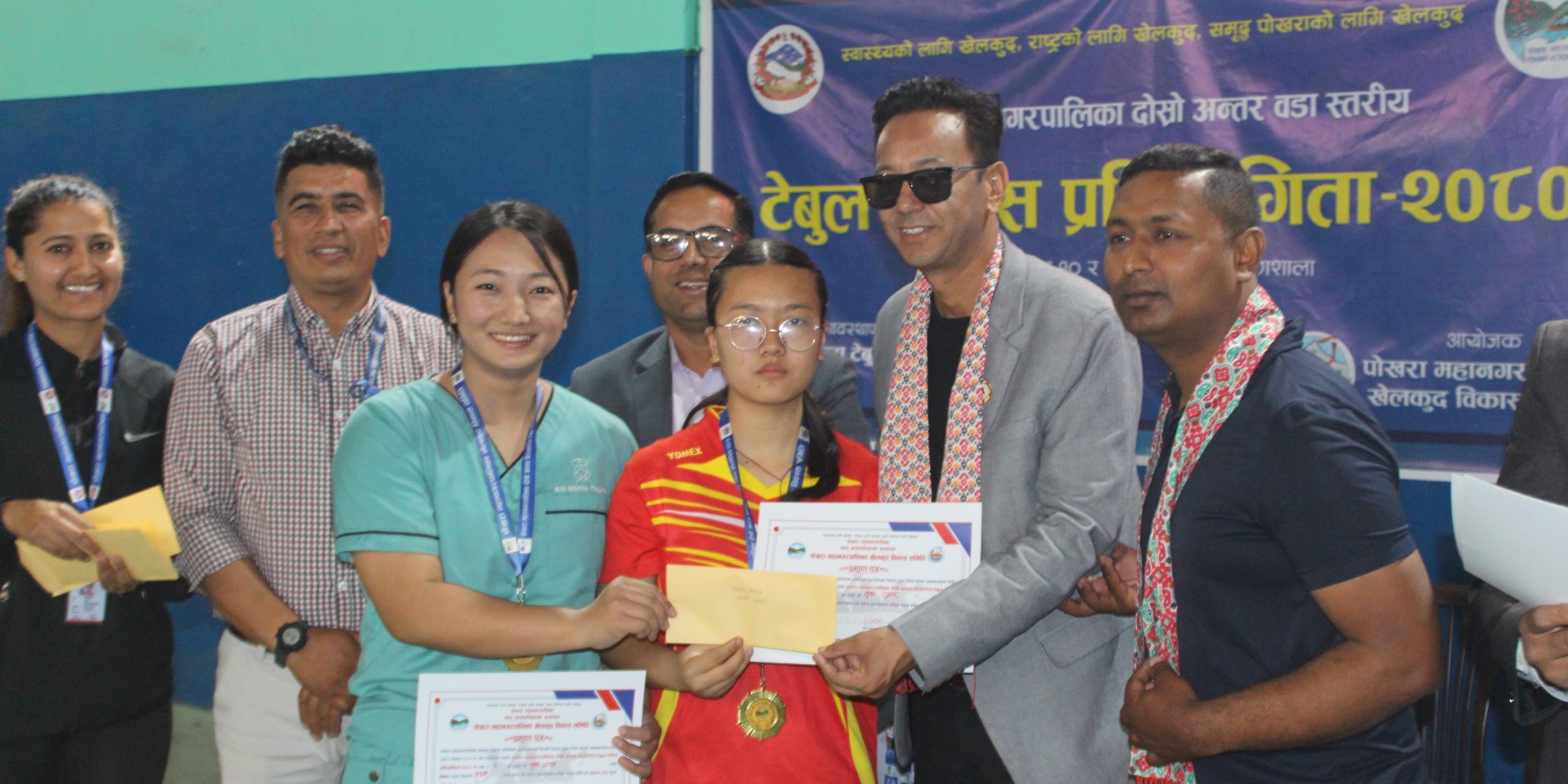 पोखरा, ११ वैशाख । पोखरा महानगरपालिका खेलकुद विकास समितिले आयोजना गरेको अन्तर वडास्तरीय टेबल टेनिस प्रतियोगितामा वडा नम्बर ९ को टोलीले वर्चस्व कायम गरेको छ ।