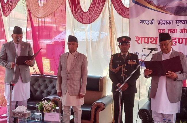 पोखरा, १५ बैशाख । गण्डकी प्रदेशका मुख्यमन्त्री सुरेन्द्रराज पाण्डेले पद तथा गोपनियकताको शपथ लिनुभएको छ ।