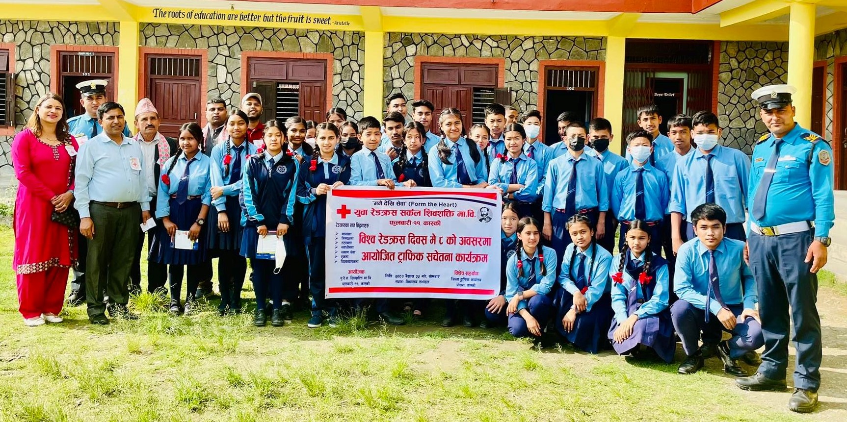 नेपाल रेडक्रस सोसाइटी जुनियर यूवा समिति संयोजक रमेशराज भण्डारीले उद्घाटन गर्दै शुरु भएको कार्यक्रममा जिल्ला ट्राफिक प्रहरी कार्यालय कास्कीसँगको सहकार्यमा ट्राफिक सचेतना कार्यक्रम सम्पन्न गरिएको विद्यालयका शिक्षक नायक शर्मिला बराल सापकोटाले जानकारी दिइन् । कार्यक्रममा वरिष्ट हवल्दार शंकर अवस्थी र घनश्याम आचार्यले ट्राफिक नियमका बारेमा जानकारी दिनुभएको थियो ।