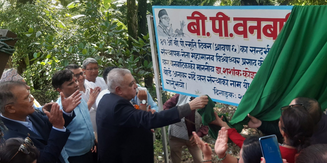 उक्त अवसरमा पूर्व महामन्त्री शशांक कोइरालाले बृक्षारोपण गरिएको स्थललाई विपी बनबाटिका घोषणा गर्नुभएको थियो ।