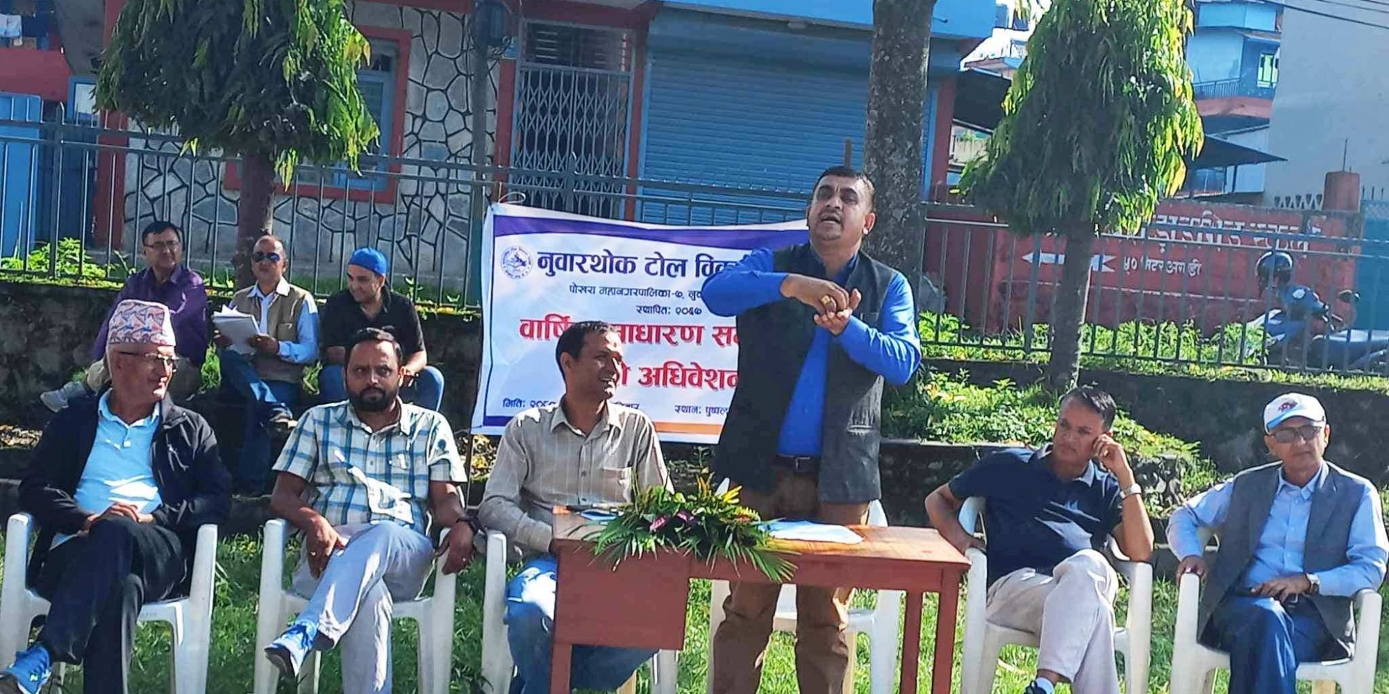 पोखरा ,भदौ २ । पोखरा ७ मा रहेको नुवारथोक टोल बिकास संस्थाको अध्यक्षमा पुन दामोदर बराल निर्वाचित हुनुभएको छ । शनिबार सम्पन्न संस्थाको वार्षिक साधारण सभा तथा चौथो अधिवेशनले बरालको अध्यक्षतामा १० सदस्यीय कार्यसमिति चयन गरेको हो ।