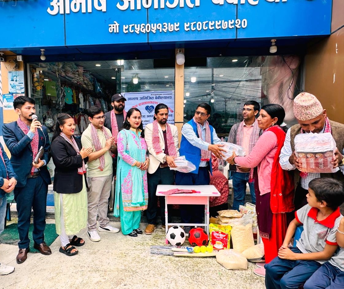 पोखरा । पोखरा महानगरपालिका वडा नं १० अमरसिंहचोकमा सञ्चालित आभाष अभिजित बेबिल्याण्डले आफ्नो प्रथम वार्षिकोत्सवका अवसरमा पोखरा महानगरपालिका वडा नं २३ स्थित सिद्धबराह आधारभुत विद्यालयका छात्रछात्राका लागि शैक्षिक तथा खेलकुदका सामाग्रीसँगै खाजाका सामाग्री वितरण गरेको छ ।