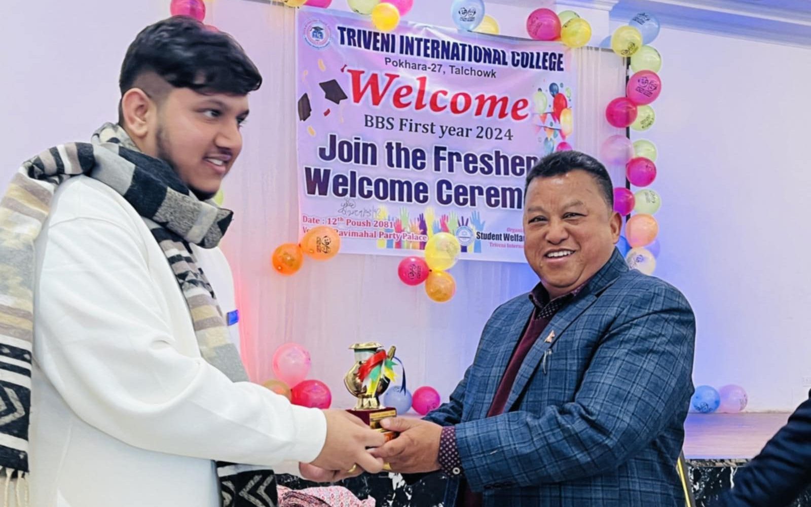 लेखनाथ । त्रिवेणी इन्टरनेशनल कलेज पोखरा २७ को विद्यार्थी कल्याणकारी समितिले विविएस प्रथम बर्षका विद्यार्थीलाई शुक्रबार एक कार्यक्रमका विच स्वागत गरेको छ ।