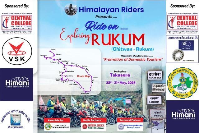 रूकुम पूर्वको एक हजार वर्ष पूरानो टकसेरा गाउँलाई मुख्य गन्तव्य मानी ‘एक्स्प्लोरिङ रुकुम’ टाइटलका साथ यात्रा आयोजना गरिएको कार्यक्रम संयोजक अमृत जोशीले जानकारी दिनुभयो ।