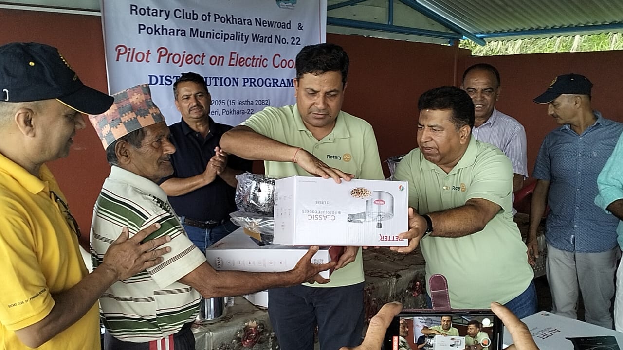 पोखरा । रोटरी क्लब अफ पोखरा न्यूरोडको आयोजना र पोखरा महानगरपालिका वडा नं. २२ को कार्यालयको सहकार्यमा उल्लेरी गाउँका ५० घरपरिवारलाई विद्युतिय चुल्हो सहित आवश्यक भाडाहरु विहिबार वितरण गरेको छ ।