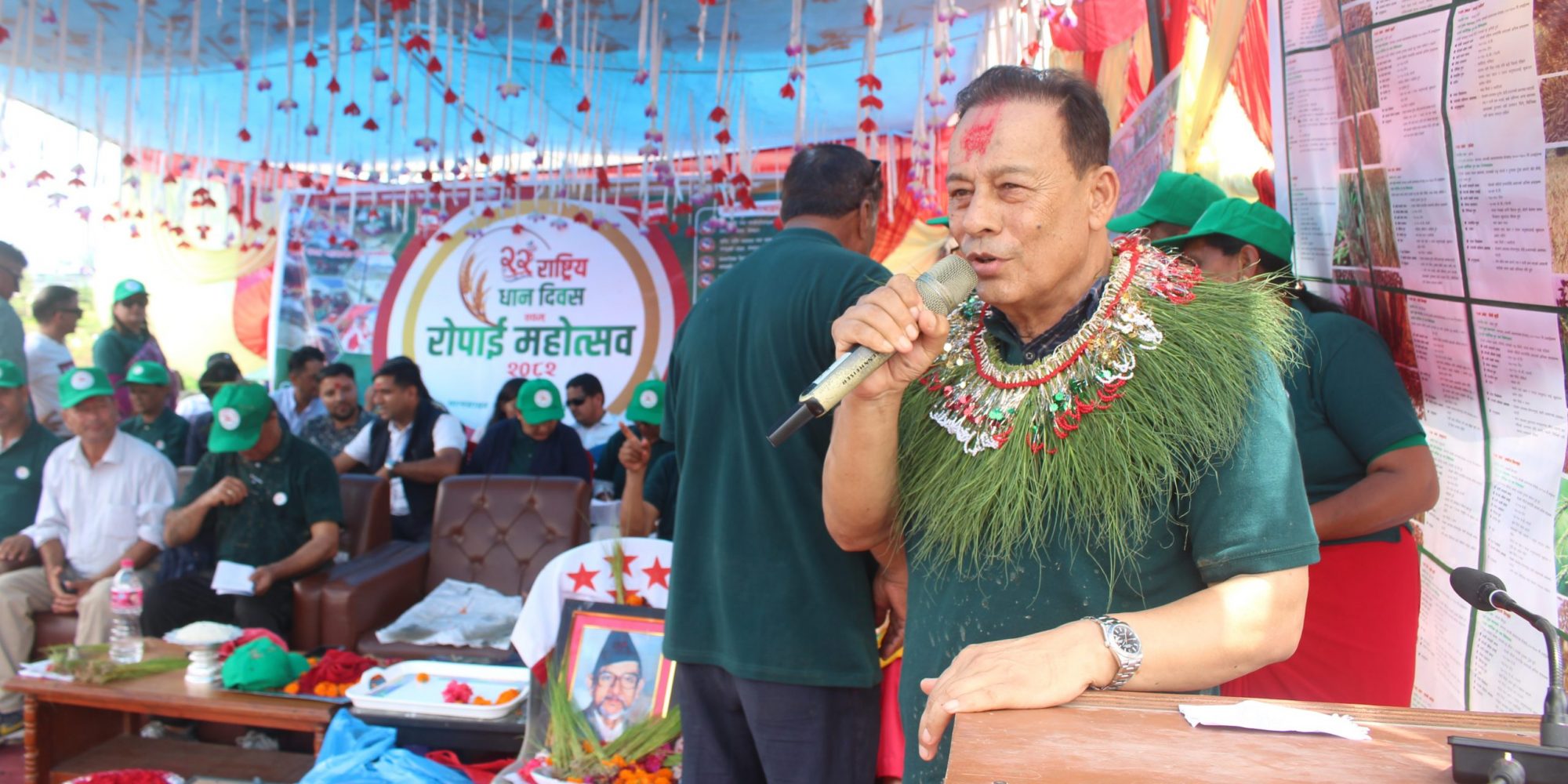 “धान जीवन, संस्कृति र आत्मनिर्भर अर्थतन्त्रको मेरुदण्ड हो । माटो बचाऊ, धान फलाऊ भन्ने मूल नाराको मर्म आत्मसात गर्दै कृषि पेसाप्रति सम्मान र प्रवद्र्धन गर्न आवश्यक छ ।”,उहाँले भन्नुभयो ।