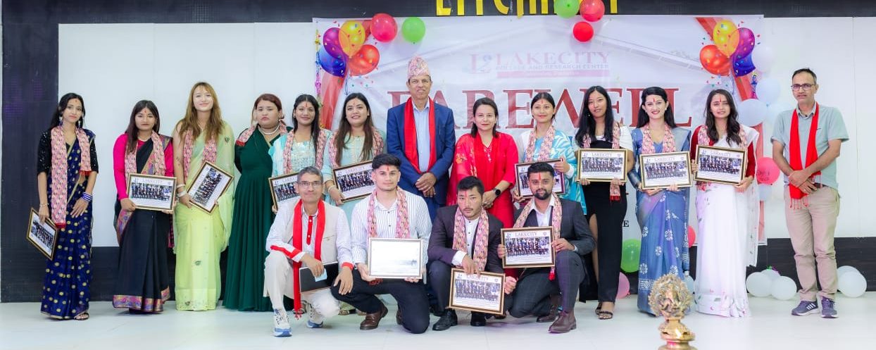 पोखरा । लेकसिटी कलेज एण्ड रिसर्च सेन्टर पोखराले स्नातक तह अध्ययन पूरा गरेका विद्यार्थीहरुको सम्मानमा एक कार्यक्रमको आयोजना गरि विदाइ गरेको छ ।